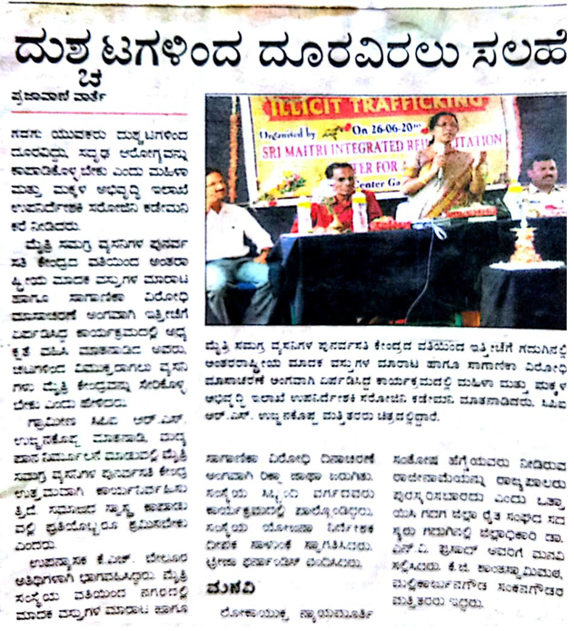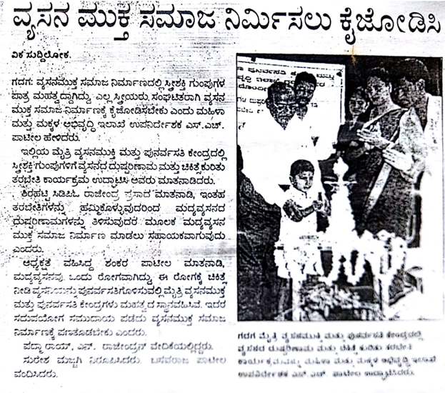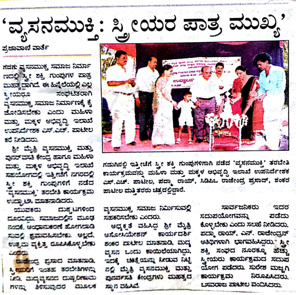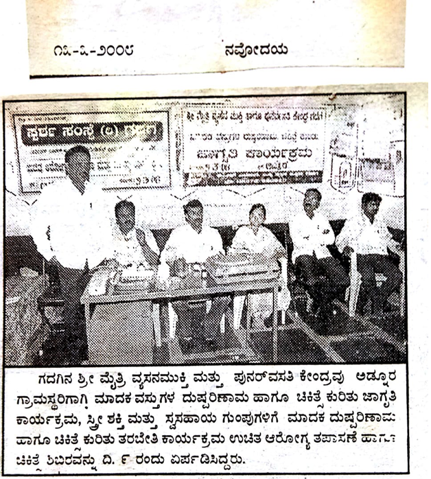 Published about conducted awareness program to self-help groups about ill-effects of Drug abuse at Prajavani Daily Newspaper on 03-03-2008