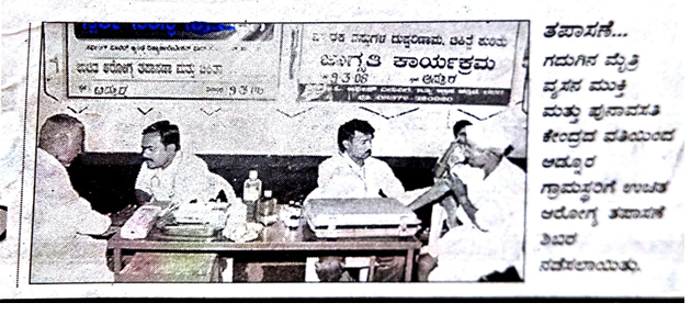 Published about conducted Free health Camp in Adnur village by Sri Maitri Association at Kannada Prabha Daily newspaper on 12-03-2008